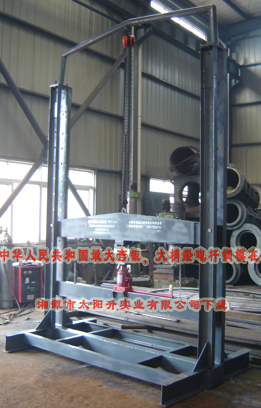 1、 根据实验型号,确定横梁高度,横梁上下由手拉葫芦调整好,栓好固定销。