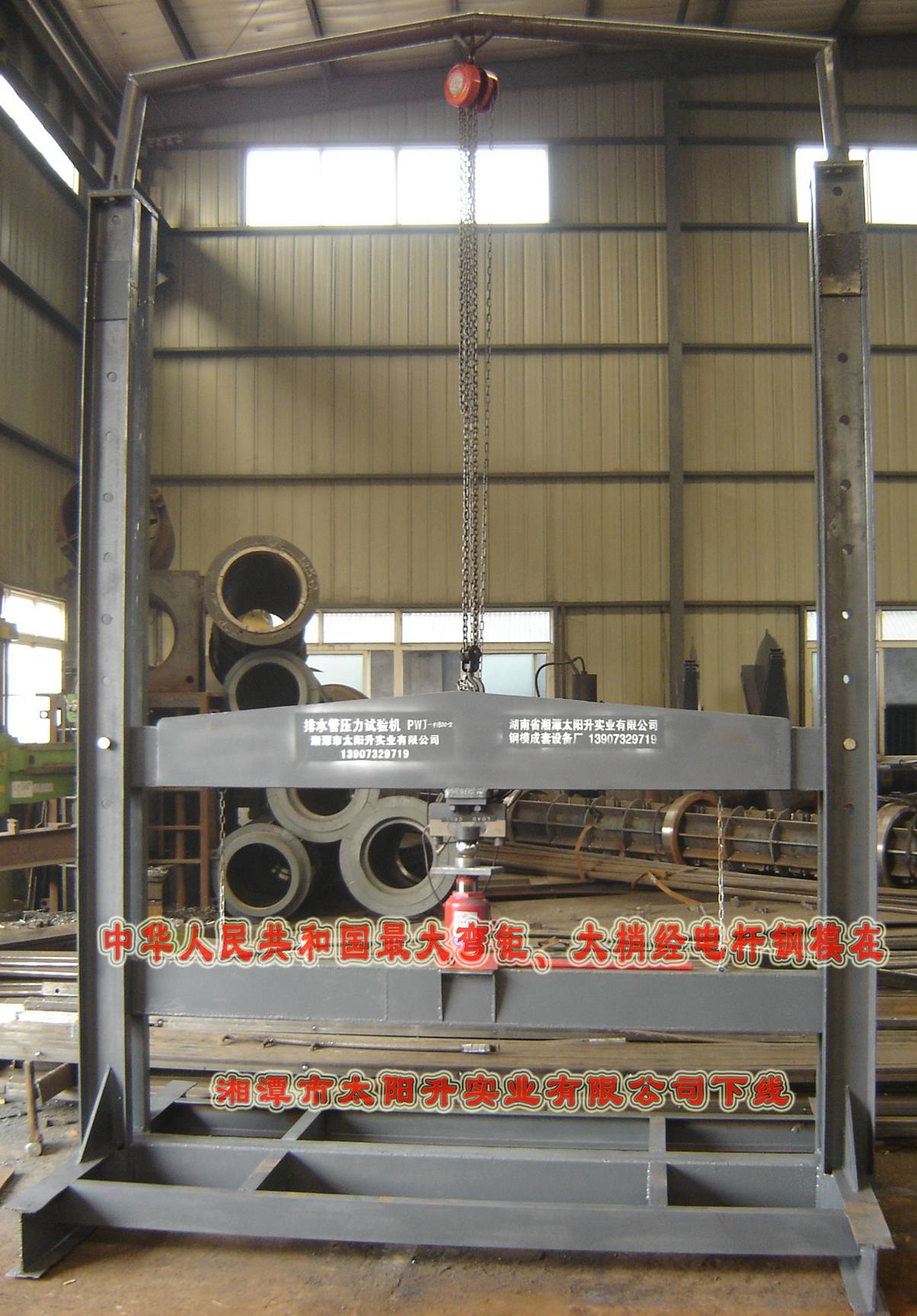传感器最大显示载荷为32T,检验水管最大规格为Φ1800×180×2m,型号PWJ-1800×2。